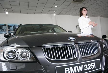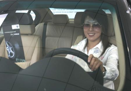 图为:冰雪女皇杨扬驾驶着自己的爱车--BMW325i。