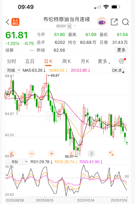 本轮调价周期内,国际油价上下波动,总体呈先涨后跌的态势,国内油价调整预期也时跌时涨。目前,美国正推动俄乌达成和平协议,若协议达成,可能令全球市场石油供应增加;同时美联储降息不确定性抑制投资者风险偏好,到上周五收盘,国际油价连续第三日交易日下跌。